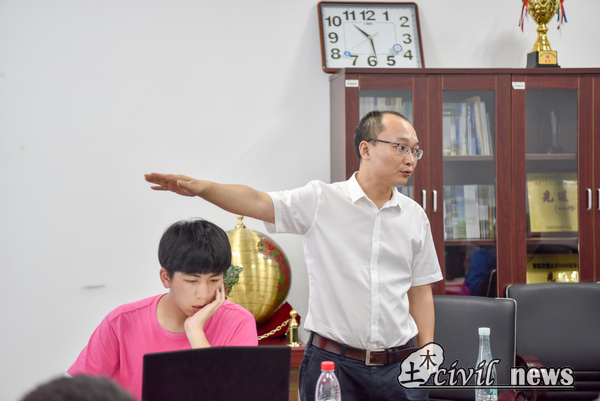 由叶高宏学长来讲述本次竞赛的赛题,叶学长向同学展示了本次竞赛的加载点位置示意图,并讲述了本次赛题的要求,在叶高宏学长讲述的时候,余志祥副教授认真细致的进行分析补充,向同学们详细的说明了本次竞赛的分析,娴熟的从本次竞赛中提炼出几个关键词,并且给同学们提供了一些很重要的建议,同时,李力副教授与余志祥副教授一起给同学们分析了在竞赛中可能出现的问题。