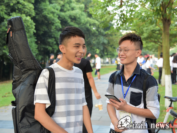 随后,新生们接踵而至,迎新点排起了一条长龙,气温也渐渐上升,但这丝毫没有减退同学们的热情。现场也不乏送孩子上学的家长,他们为自己的孩子忙碌奔走,已寄托即将分别的思念。