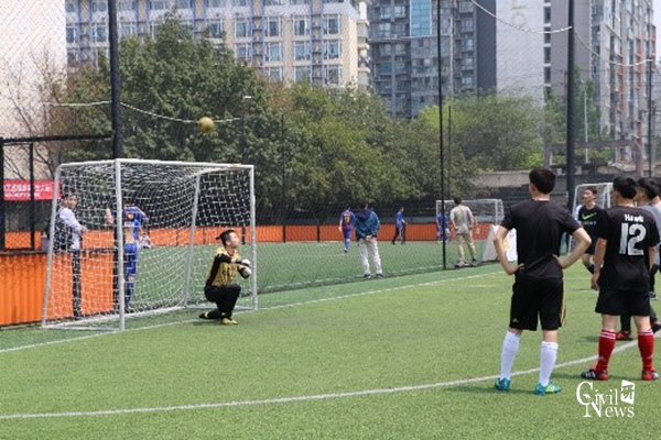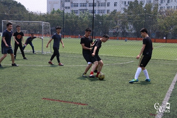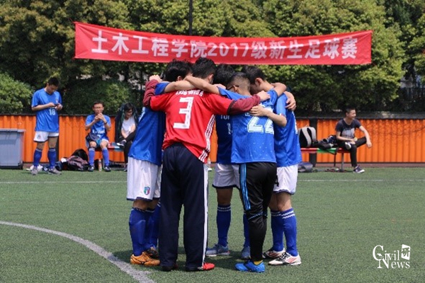 随着哨音吹响,比赛在骄阳下开始了。B组隧道专业足球队与博士足球队上半场两边踢得有来有回,两边的后防线发挥都很稳定,不让对手有任何近距离射门的机会。上半场结束,两边0比0战平。