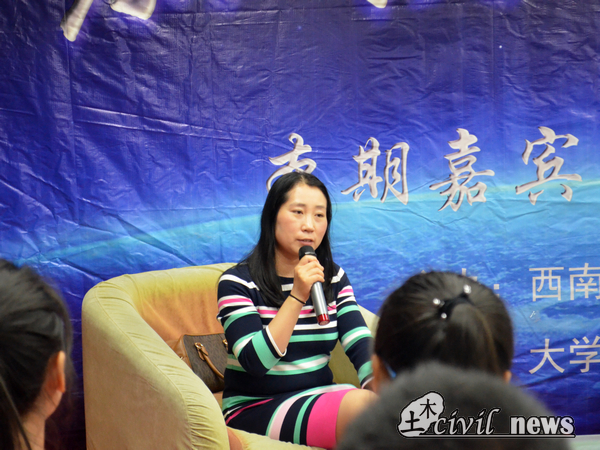此后,任教授详细地介绍了道路与铁道工程方向的具体工作及研究方向。在谈及女生学习土木工程专业是否会不合适或者有劣势时,任教授谈起了她本科时期的一件事,她也向当时的校长提出了这样一个问题,而当时的校长回答她:“优秀的女生更容易找工作,只要强大自己,就可以突破专业的限制”。