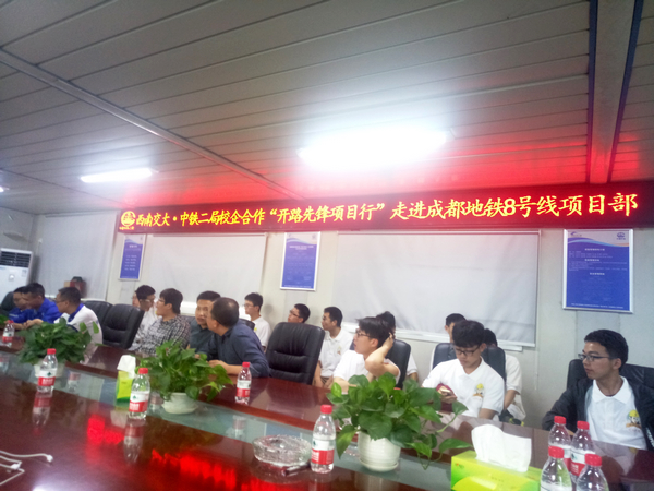 师生们参观完中铁二局陈列馆后,乘车前往城通公司承建的成都地铁8-1标盾构分部项目部参观学习,详细了解地铁车站、盾构施工工艺及流程。在项目部座谈会上,中铁二局、城通公司人力部及项目部班子成员等结合师生们的提问进行了积极解答,并开展了互动交流。期间,交大学生重点就他们关心的工地工作、学习和生活等进行了沟通和交流,并表达了加入中铁二局的愿望。