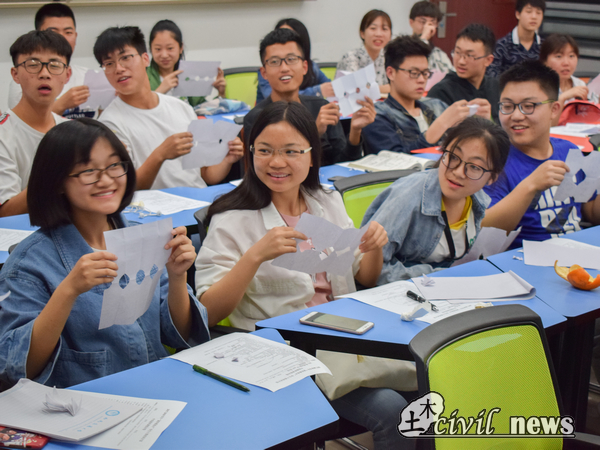 首先,车老师便让各学员玩一个撕纸游戏。伴随着车老师:“对折,再对折,再对折,然后在左上方撕一个角,翻转一周,再在右上方撕一个角”的口令,同学们也随之完成相关操作。当打开纸时,学员们的纸上呈现出许多不同的缺口。车老师通过这个游戏说明了这样一个道理:单方面的说一定不是沟通。