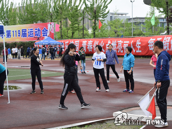 的赵文玉同学在女子跳远决赛中取得第五名的好成绩。在其他的项目中也可见我们土木人矫健的身影,他们一次次地挑战着极限,突破自我,即使摔倒在沙坑中,也绝不退缩。