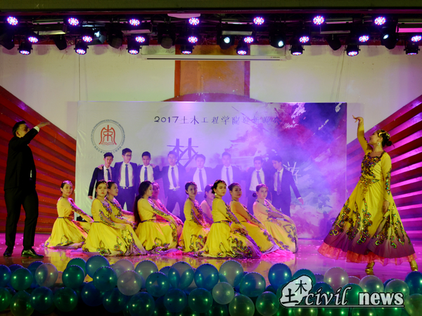翩翩舞步中,踏出的是土木学子的青春火花。第一个节目是由色情短剧及ASCE协会带来的歌舞剧——《Summer Night》,活泼愉悦的歌声中,舞者们面含春风,尽情享受着台上的每一秒钟,她们的活力感染了台下的每一个观众。