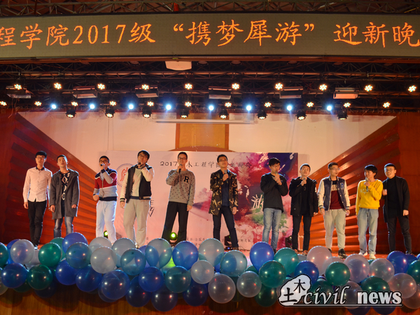 晚会的最后,是由全体2017级助理辅导员合唱的歌曲《爱因为在心中》,歌声中人群缓缓散去。求学之路上,有土木的你我相伴。