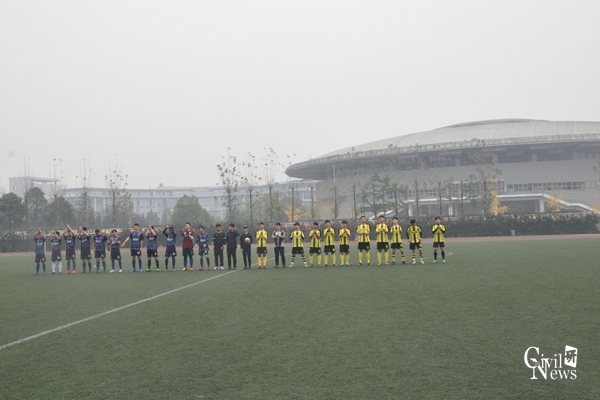 足球队队员并没有放弃,积极拼抢,多次抢断对方,但是苦于人数太少,没有追平比分。中场哨响,比赛结束,机械学院足球队以2:1的微弱优势取得了比赛的胜利。