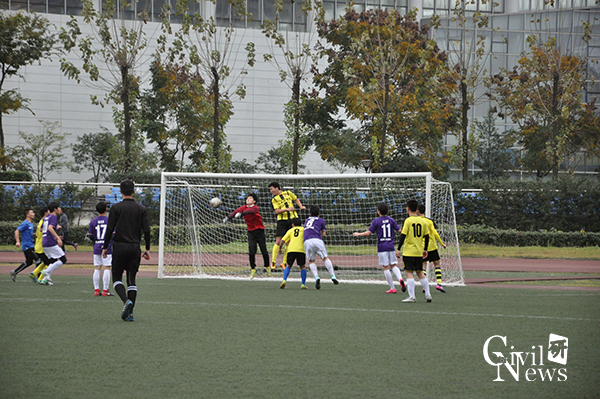 下半场开始,双方拼抢得更加激烈,主裁的哨声也响得更加频繁起来。在51分钟的时候,经管学院本科队同样是利用角球扳回一城。即使比分被逼近,土木研究生队依旧有条不紊的组织进攻与防守,不给对方留下任何防守漏洞,同时不断寻找破门机会,经管本科队也积极防守,最终3:2的比分保持到了全场结束。