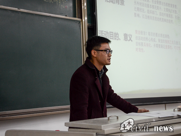 接下来,各小组讨论分享了手中策划书的利弊,叶老师也对各同学的发言做出了点评、对活动开展方面做出详细讲解。他用自己个人的亲身事例指出前期准备中同学们必须要有面临突发事件的准备;在活动中期,应设置一名场边负责人,以便随时应对紧急事件的发生;在活动的后期总结中,要注重文件的处理以及总结大会的召开。
