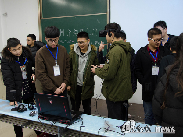 讲座的末尾,两位教授让同学们用他们带过来的VR设备亲身感受了一下BIM技术在施工建造方面给我们带来便利。