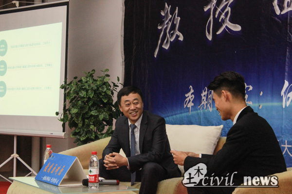 随后,主持人就从仇教授的研究生学生们处得来的信息,向仇教授询问了他对待自己科研工作的方法,仇教授用“用双脚做研究”一表自己对实践的看重。谈及对“女生学土木专业不被看好”的看法时,仇教授告诉同学们:“土木是一门需要吃苦的专业,只要吃的下苦,女生也可以学好土木。”当主持人问到同学们最关注的仇教授对学生的要求时,仇教授表示除了成绩外,他的学生还需要吃得下苦,具有团体精神,最重要的是,需要有创新意识,对此,仇教授还特地举了钱学森先生的例子,并强调这是现在的中国科研工作者非常需要的品质。最后,主持人向仇教授提出了最后一个问题:“如今的土木工程专业怎样才能跟上时代的发展?”仇教授用简短的一句话概括其答案——加深人类对自然的认识!