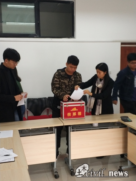 会议开始,刘萍老师首先说明了此次推选会的意义和选举要求,同时分发选票。此次团代会代表的候选人包括参与此会议的校团委廖军书记、院分团委刘萍书记,以及土木研究生会主席任权、校学生会主席陈景适在内共21人,其中大部分为来自土木各个基层团支部的团员们。