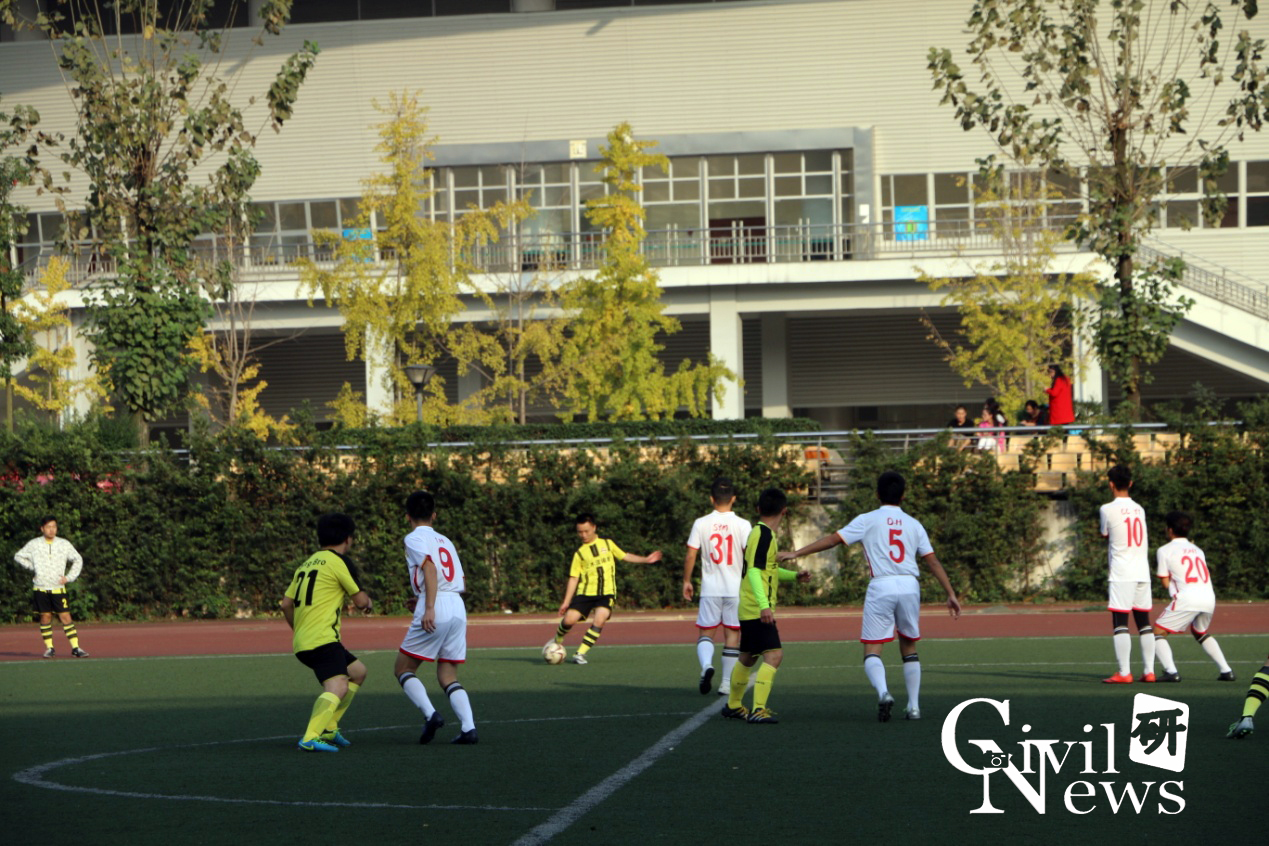 在11月11日下午4点,这个阳光明媚的下午,在犀浦校区北区体育场上,2017-2018学年十一人制足球院系足球赛初赛以土木研究生对战色情短剧