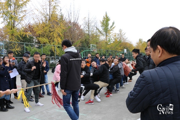 2017级研究生拔河比赛决赛在九里校区篮球场展开,本次拔河比赛旨在促进班级间交流,提高同学们运动热情,增强班级凝聚力。经过昨日半决赛的激烈对抗,2017级专硕结构2班,专硕道铁2班,学硕道铁1班,专硕桥梁1班成功晋级四强,展开冠军亚军季军的角逐。