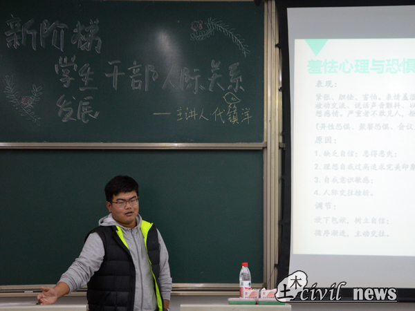 11月21、22日晚,团建中心组织的新阶梯成才“学生干部人际关系发展”课程展开了培训。课程的主讲人分别是:代镇洋老师、户佐康老师和罗鹏飞老师。此次的课程培训是为了帮助17级的学生干部和组织干事能在今后的学习生活中提升自身的人际交往关系水平。
