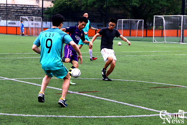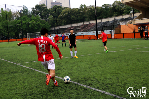 “解放者杯”足球半决赛在田径场举行。4支来自不同专业的代表队参加比赛,分别是专硕结构对战桥梁队、博士班对阵专硕隧道。