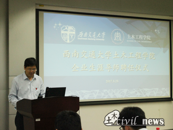 土木工程系隧道及地下铁道专业,现任鲲鹏建设集团有限公司董事长。讲座开始,毛先生首先简单介绍了自己,随后便开始了专业的职业生涯规划演讲。毛先生先后从土木工程行业的选择、工作体制的选择以及未来的第一份工作的选择做了详细的讲述。“学而优则技,学而优则管”,这是毛先生送给所有在场学生的一句话:学习优秀了就可以做技术,学习优秀了也可以做管理。最后,毛先生亲切地留下了联系方式并欢迎同学们向他咨询问题。