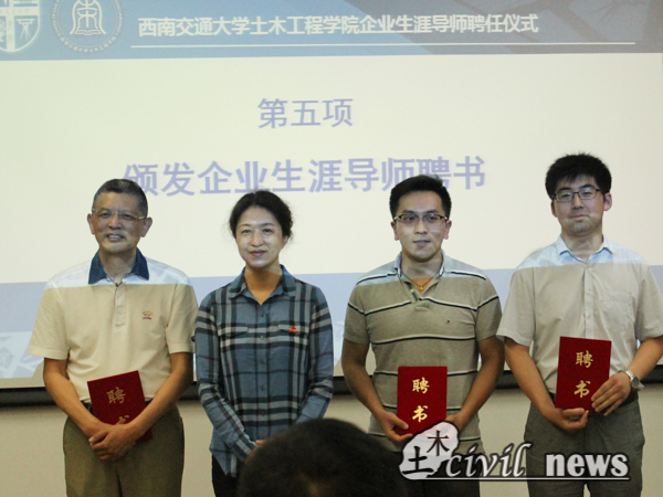 在李书记的主持下,富院长、高处长和潘处长为企业生涯导师颁发聘书并一起合影留念。