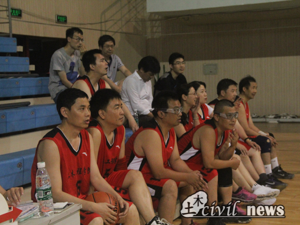 的老师们就早早地来到了球场,为即将到来的比赛积极准备。5时30分,裁判员确认双方队员准备完毕之后宣布比赛开始。上半场土木队以20:7的成绩暂时取得领先。在中场女子投篮环节中,王楠,于丽两位女老师为土木队贡献了自己的一份力量。