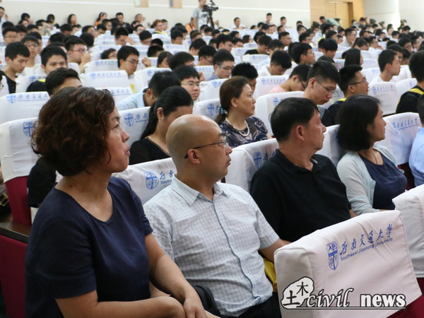 党委书记刘学毅教授、委员会副主席学院副院长富海鹰教授、委员会委员学院副院长祝兵教授和委员会委员岩土工程系主任马建林教授。到场的嘉宾有:学院党委副书记李彤梅、院长助理刘成清,以及学院各个系、室的负责人、2017届各班班导师和学院辅导员们。