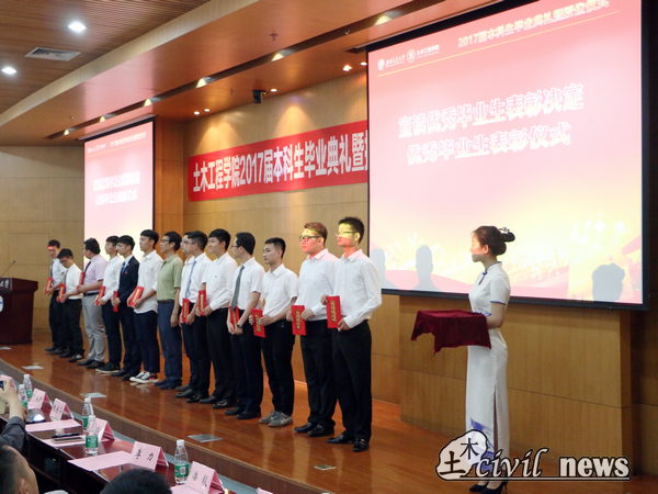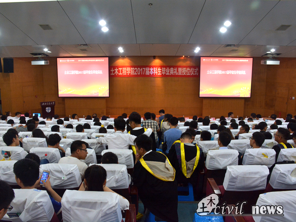 2017届本科生毕业及授位决定》。百年土木,树人百年,2017届本科生共有469人顺利毕业,获得工学学士学位。宣读之后,在缓缓的音乐声中,毕业生们依次进行授位仪式并合影留念。