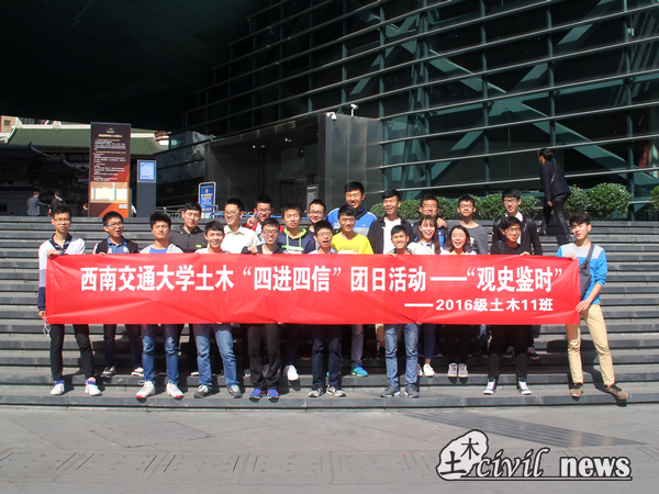 2017年4月22日,16级土木11班在成都博物馆成功举行了名为“观史鉴时”的四进四信主题团日活动。本次活动由团支书张冰主持,活动内容丰富,形式新颖,到场的同学们参与热情高涨,学习气氛浓烈,活动举办非常成功。