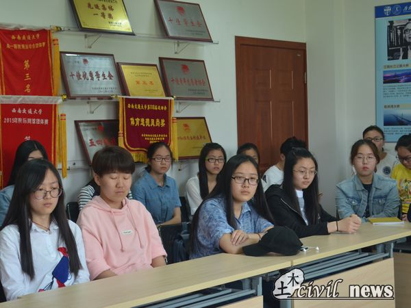 土木工程专业的校友:王芳、刘弘葳、胡芮和李秀杰。各年级的土木女生齐齐到场,倾听几位学姐讲述职业道路和人生规划。