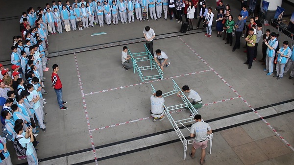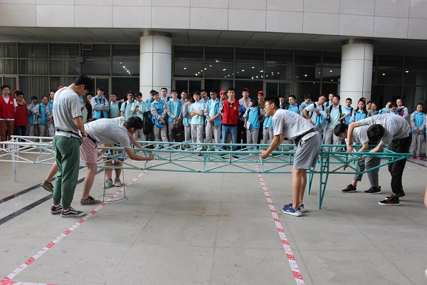 随后,刚刚在美赛东南赛区中取得第四名好成绩的交大ASCE钢桥队为附中同学们带来了一场精彩的钢桥拼装表演。他们的默契与娴熟引来同学们阵阵掌声。