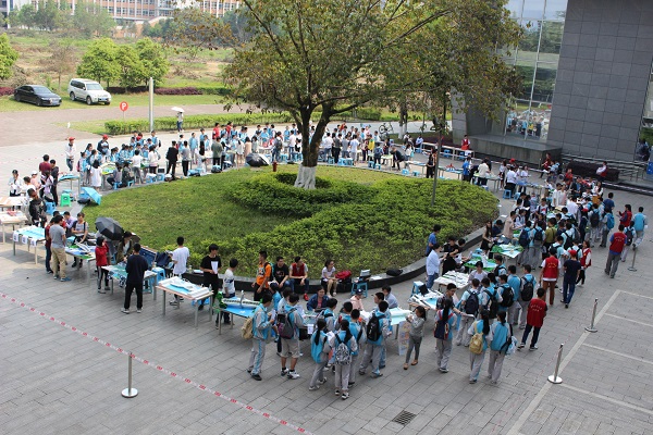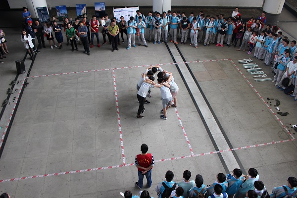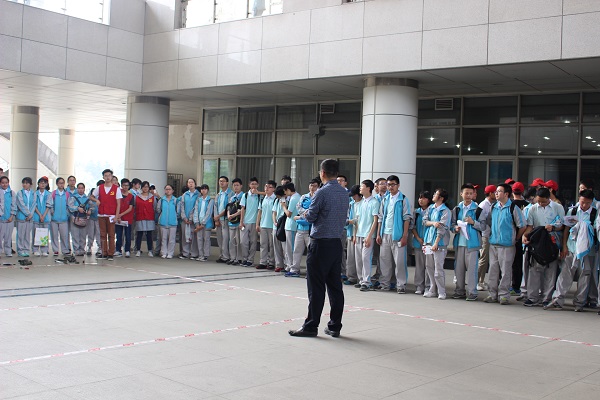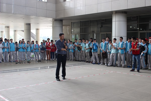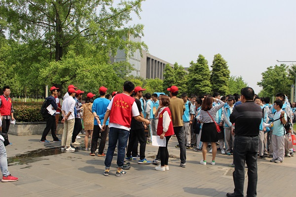 午时1点30分,交大附中的同学们在土木青协和科创志愿者的组织下于四号教学楼脚下集合。