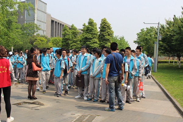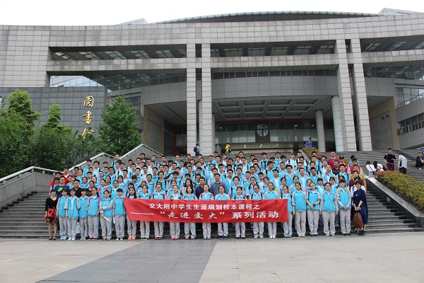 下午4点整,同学们结束了一天的交大游览,在图书馆门口合照。