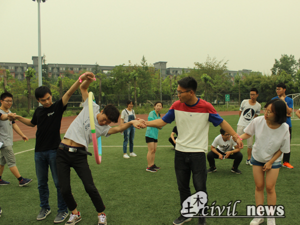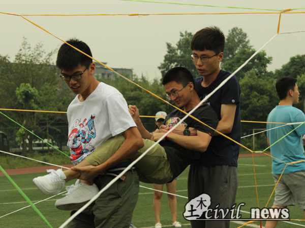 分组完毕后,游戏正式开始了。进行的第一个游戏是穿越火线——每组由四名队员抬着一名队员穿越“危险地带”。被抬者不得动弹,其余四人小心翼翼,力求避过每根细绳,常有同学被细绳绊倒,另外几人摔在一起的惨局出现。经过百般周折,才跨越重重障碍,到达终点。接下来进行的游戏叫做“你画我猜”,此游戏有趣之处就在于队员猜出的答案和标准答案可能大相径庭,六支队伍均在“你画我猜”环节中战绩不佳,却收获了诸多欢乐。