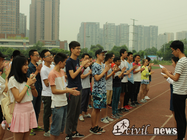 八大组织的学生干部们。天公作美,今天一改往日的闷热天气,使此次素质拓展得以在凉爽的天气中拉开帷幕。