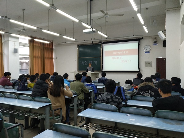 学生党支部响应学校和学院深入学习两会精神的号召,于2017年3月27日在犀浦校区X2220开展了以“关注两会、学习两会”为主题的学习交流活动,部分学生党员和积极分子参加了本次学习活动。