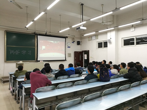 学习交流会上土木学生第十六党支部书记杨鑫先组织大家观看了两会视频,通过视频学习政府工作报告的部分重点内容,通过学习大家对“两会”召开背景,政府工作报道强调的经济发展问题、扶贫问题、教育问题、看病问题、医疗问题、就业问题等都有了一定的认识,加强了两会会议精神的理解。