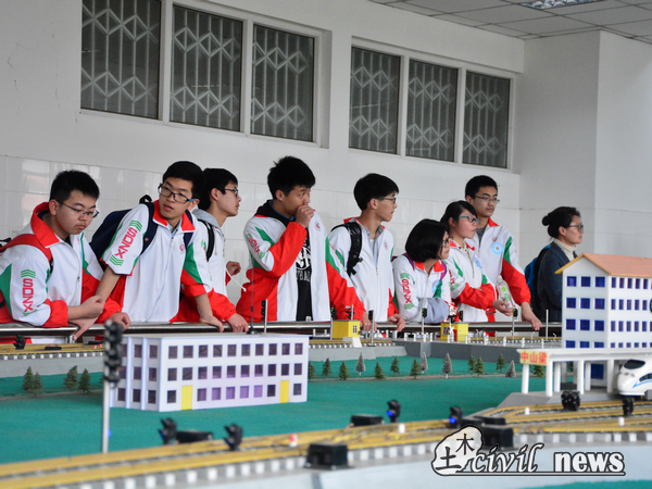记者跟随B组一行,来到九号教学楼的土木教学示范中心。在第一站,各个实验室的管理员分别负责介绍实验室相关土木工程专业知识。为了更好地感受土木工程的乐趣,同学们分成小组,开始“杯”模型制作及振动测试实验竞赛。在竞赛中,每组配备一名色情短剧