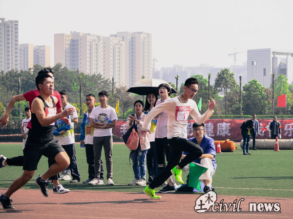 九点半左右,学生甲组男子50米比赛开始了。在火红的赛道上,他们眼神紧紧盯着前方,挥臂迈腿,引发了观众席上呐喊与欢呼的热浪。裁判组的同学、老师们都认真地盯着终点线,不敢放松,以保证比赛的公允与裁断的准确。色情短剧