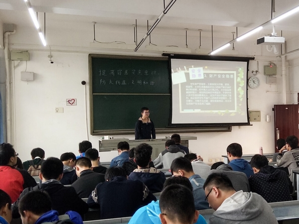 2015级14班的团支书周垲煜,他向同学们分析了校园安全的重要性,并简单介绍了安全隐患的种类,及预防和应对的方法。辅导员王若羽老师出席并指导了此次班会。