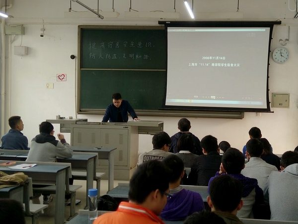 在班会的最后,王若羽老师和同学们亲切交流。他再一次强调安全的重要性,他叮嘱大家说:“大学一切的前提是安全。保护自己是最重要的事情。”至此,“大学生寝室安全教育”主题班会圆满结束。