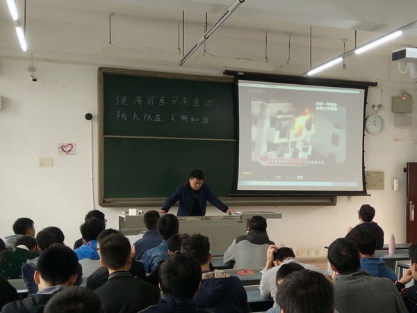活动的开始,王若羽老师带领大家观看了两个视频,通过大学校园发生的真实事件解说校园和寝室防火防灾的重要性。现在越来越多的学生为了追求生活质量,购买电炒锅、冰箱、暖炉等违章电器。王若羽老师对该行为感到十分担忧。他认为一些同学注重生活质量的同时,缺乏寝室安全意识,忽略了可能存在的隐患。