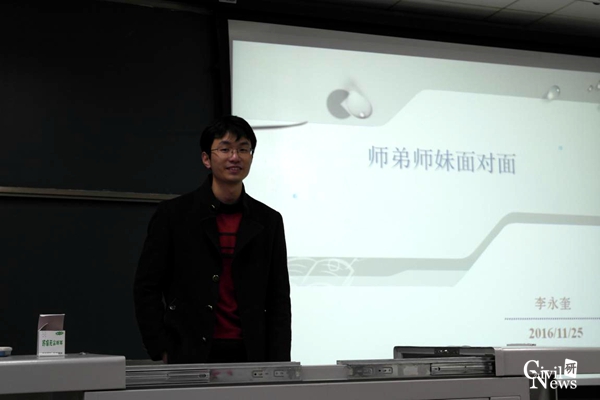 首先,主持人张力从荣誉奖项、学术论文发表情况等方面对主讲嘉宾进行了简短介绍。在现场同学的热烈掌声中,李永奎师兄踱步走上讲台。他希望大家制定一个小目标,让大家思考如何定义“成功”,并列举了他认为的色情短剧