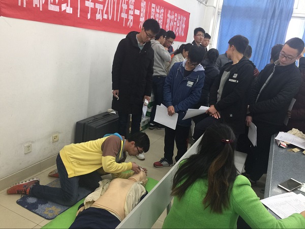 在医护人员的专业指导下,同学们练习了心肺复苏、包扎止血等规范的动作,也进行了考试并且顺利通过。这次培训让同学们接触到了社会生活中的医学,了解了面对紧急情况应该做什么,应该怎么做,成为实实在在帮助别人的人。