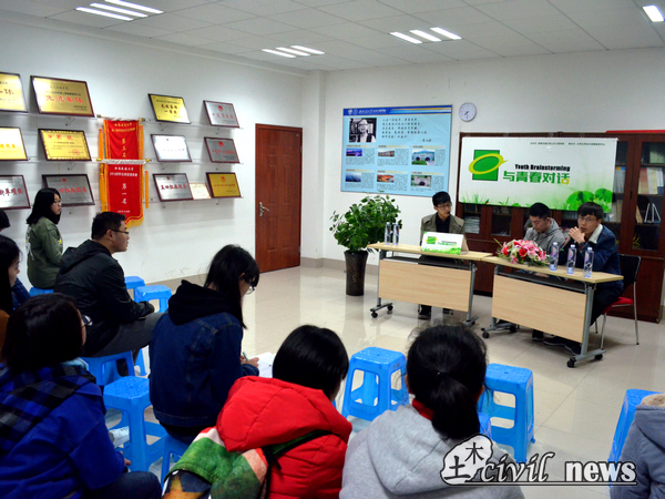 随后,王皓正与张金龙谈起了参加结构设计竞赛的经历。他们回忆起比赛中的酸甜苦辣,并一致认为校赛为国赛一等奖打下了坚实的基础。他们提议每一个土木人都去体验这样的过程,因为流下的每一滴汗水、结识的每一位朋友都是极其宝贵的财富。