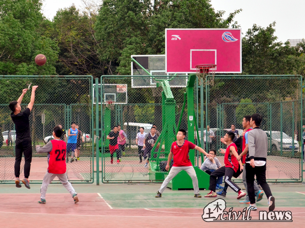 第一节比赛中,第七党支部率先罚球得分,随后组织了一系列的配合进攻,与十三党支部拉开了较大的比分。第十七党支部则在第一节比赛中依靠快攻与第八党支部拉开比分,以17:12的优势结束了第一节比赛。在第二节比赛中,第七、第十七党支部依然保持着比分优势,但十三党支部与第八党支部也稳住了自己的节奏,积极寻找机会进攻并注意防守。双方妙传频现,好球连连,各方的拉拉队都在大声为自家球队鼓气,现场气氛十分热烈。第十七与第八党支部的对抗犹为激烈,第二节比赛结束前,两队均已累计四次犯规。