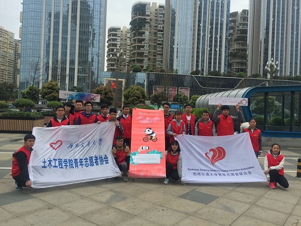 青年志愿者协会第三服务支队(交通安全服务队)受共青团成都现代有轨电车有限公司支部委员会邀请,前往世纪城地铁站和锦城广场参加以“绿色出行,文明共享”为主题的志愿服务活动。