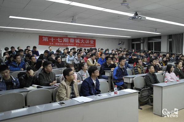 研究生分会承办的第十七期眷诚大讲堂在九里堤校区逸夫馆4209教室拉开序幕。讲堂内人头攒动、座无虚席,同学们静静地等待着今天的主讲人王帅帅及徐晨师兄登台。