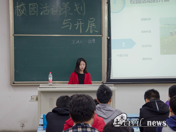 在这次培训中的开始,佐老师首先提出了“校园活动是什么”的问题,向同学们讲解了校园活动有院级活动、校级活动、省级活动、国家级活动的分类。最后总结说明了校园活动都是以机关单位、学生组织和学生社团为载体的相关活动项目。