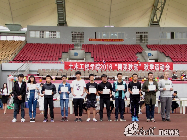 下午的第一场比赛是女子二百米决赛,随着一声枪响,比赛正式开始。晋级的八名运动员都是跑步小能手,16级4班的李贤敏更是跑出了34秒19的好成绩,夺得第一。紧随其后的是男子二百米决赛,男生们充分展现了土木学子热情奔放的一面,他们像捕猎的雄鹰冲向终点,尽情展示男儿健壮体魄。