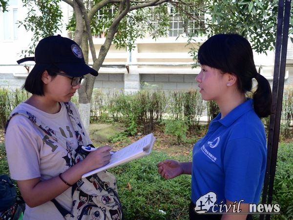 8月25日中午,迎新工作交接之际,记者来到迎新点对工作人员进行采访。今年的迎新由学院各党支部和团建中心的同学负责,分为A、B两组交替工作。