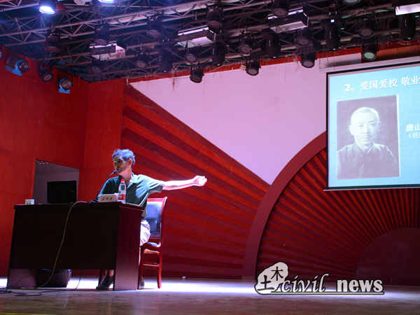 8月26日晚上七点三十分,在二食堂三楼大学生活动中心进行了新生入学教育中的校史校情讲座。此次主题为“世纪回眸”,主讲人为一直在交大生活的梁锦堂老师。梁老师从西南交大的发展历史、优良校风的形成及精英的铸造三个方面为大家讲述了交大的辉煌历史。