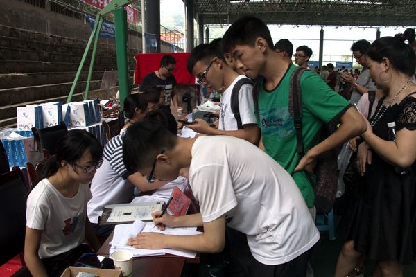在峨眉校区风雨棚开始迎接2016级新生报到的工作。