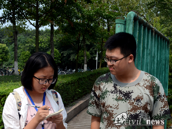 9月9日下午,记者来到北区体育场对分配到各营的2016级土木新生进行了采访。